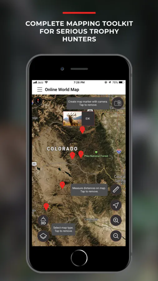 • Locate your trophy - Have you bagged your trophy? Find it easily by taking a picture of its location. In addition to the maps and marking tools, you can also use photos to navigate to your trophy destination without any hassles!