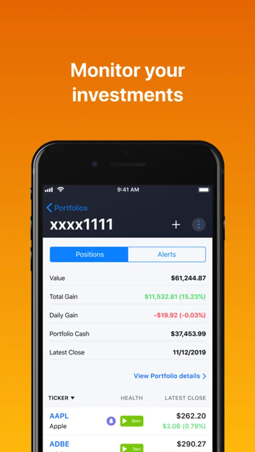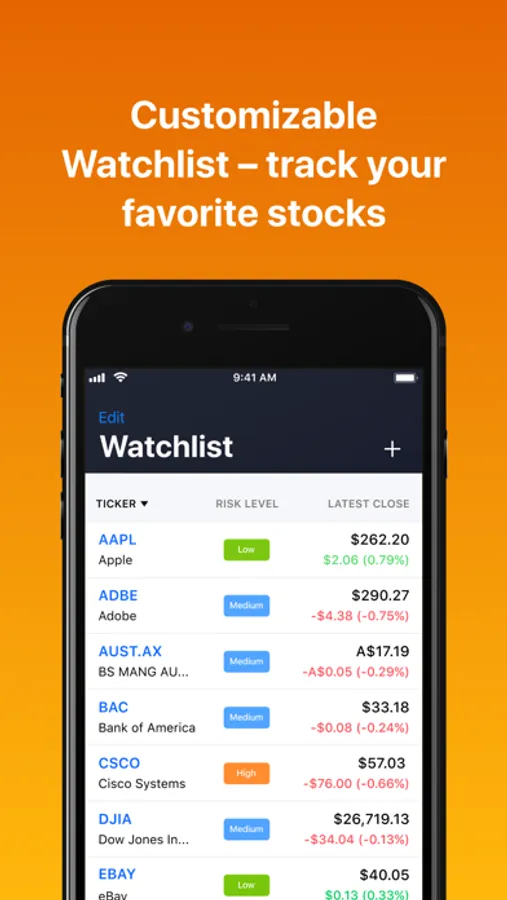 Create watch lists of your favorite investments — like Apple and Facebook — to see their risk and performance in the markets.