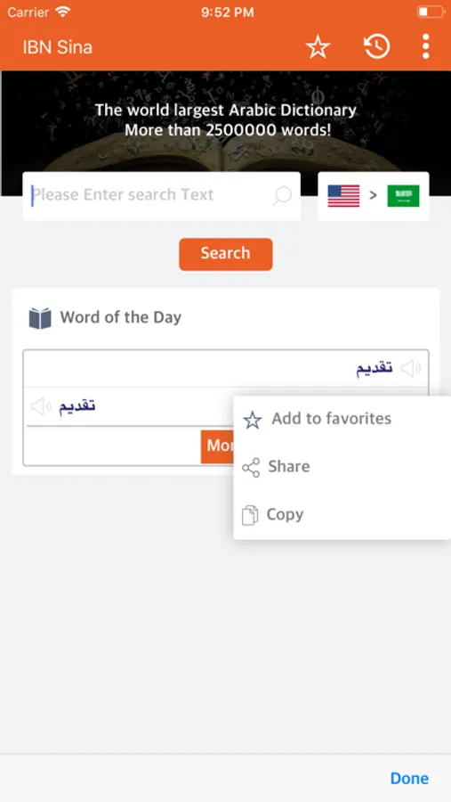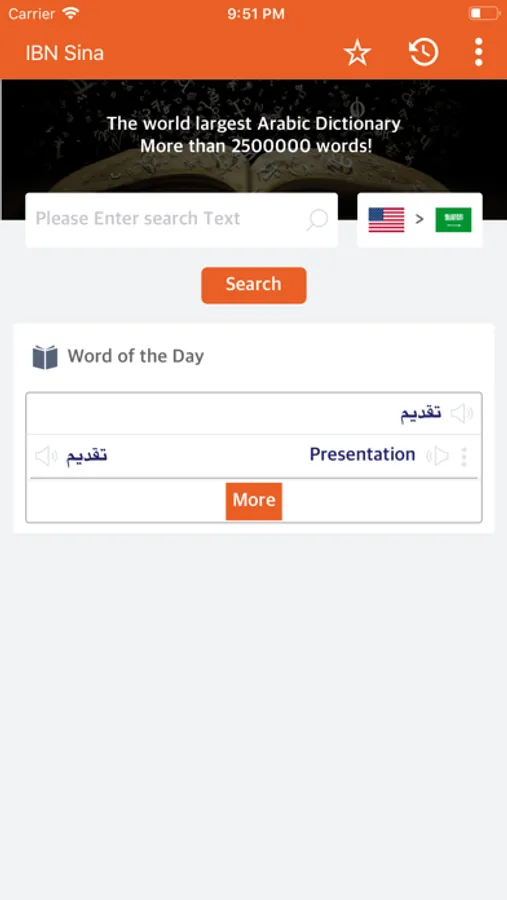 Free Arabic Dictionary by IBN Sina is simple and easy to use. It supports long text translation with human audio pronunciation.
