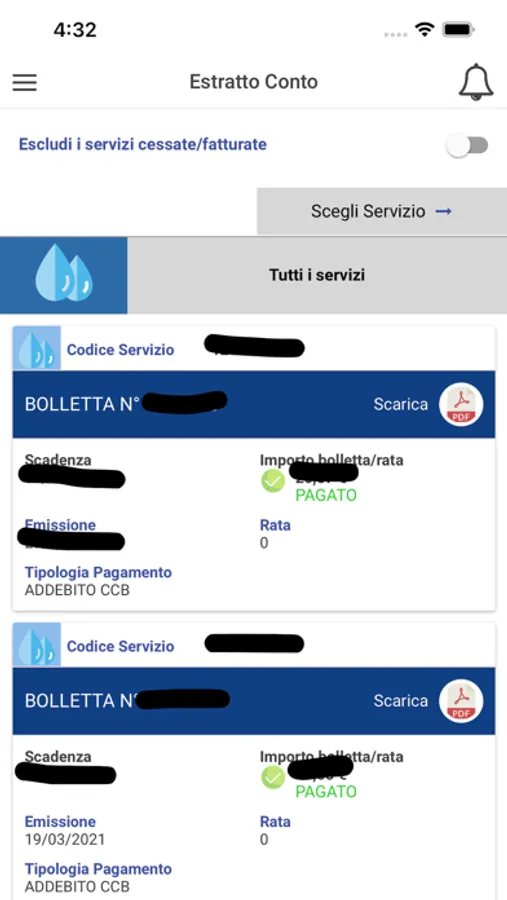 · visualizzare la tua situazione contabile e scaricare le fatture in formato pdf (Estratto conto)