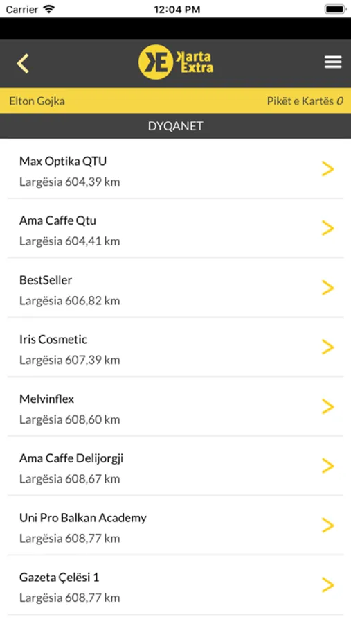 Ҫdo shërbim i ofruar gjendet në listen e dyqaneve të aplikacionit bashkë me adresën, hartën dhe informacione të tjera të nevojshme të çdo dyqani pjesë e Rrjetit Karta Extra.