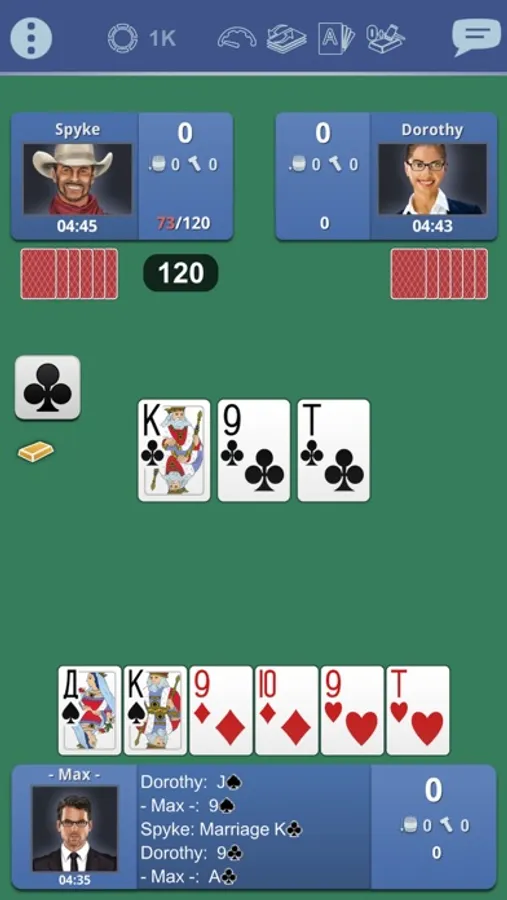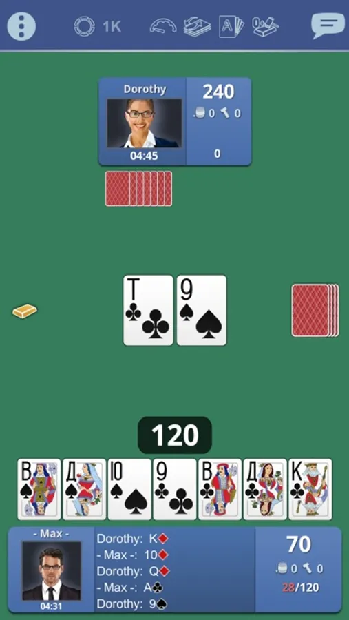 * Thousand is a card game for two or three players, the purpose of which is to collect more than 1000 points. A feature of the game is the use of “marriages” (a king and a queen of the same suit), which allows you to assign (“capture”) a trump suit.