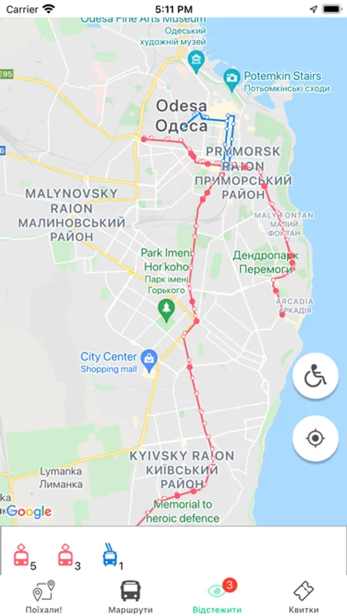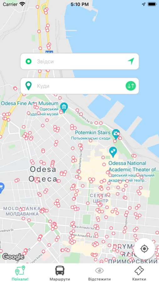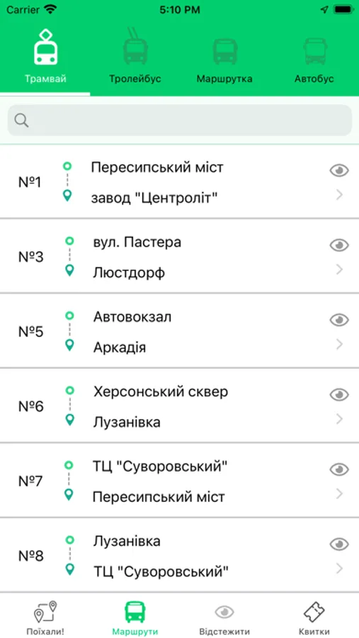 ДОПОМОЖЕ ВИБРАТИ НАЙКРАЩИЙ МАРШРУТ - Транспод будує маршрути з урахуванням всіх видів громадського транспорту: автобуси, трамваї, тролейбуси.