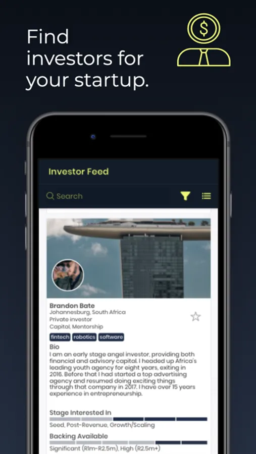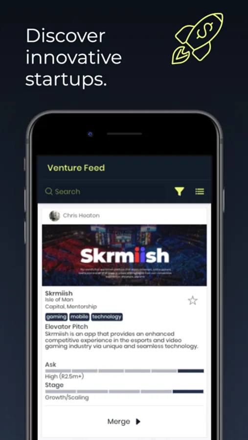 Discover. Merge. Meet. It’s that easy. Whether you have a business that's looking to grow, or an idea that’s going to change the world, you can promote your venture to a growing network of investors. While doing so, scroll through a social feed of investor profiles that you can potentially Merge with, and secure the funding or mentorship you need.