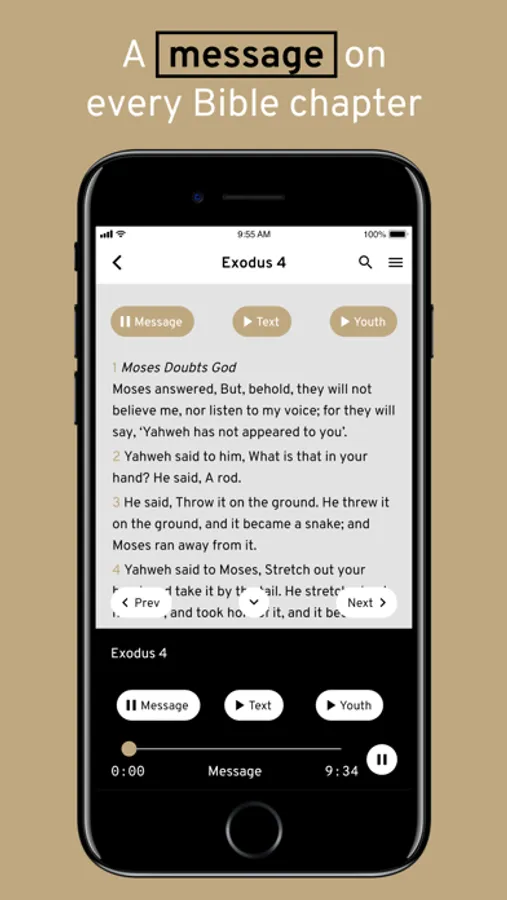 Bible text of the New European Version (Old and New Testaments) with audio, deeper commentary on every verse, basic devotionals on every chapter, audio message on every chapter, youth messages on most chapters, reading planner, ad free, plus Bible study course. The NEV is a contemporary, modern English version.