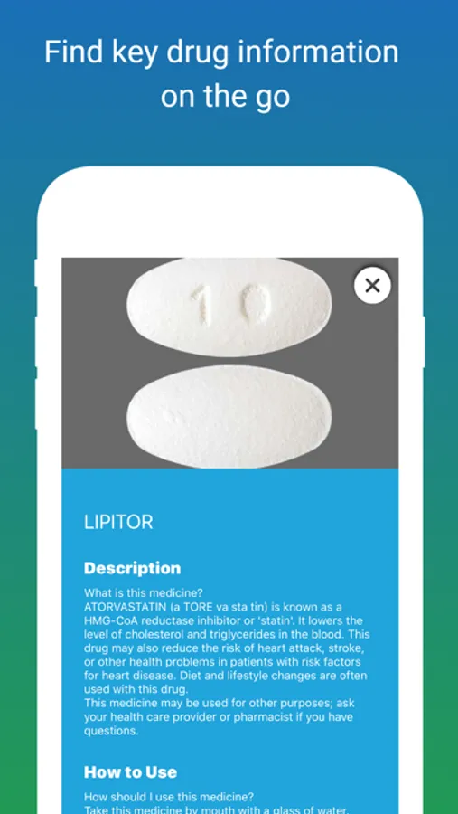 Check comprehensive drug information, side effects, interactions and other medication details using the app.