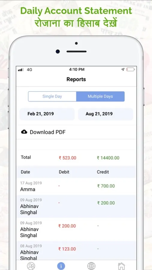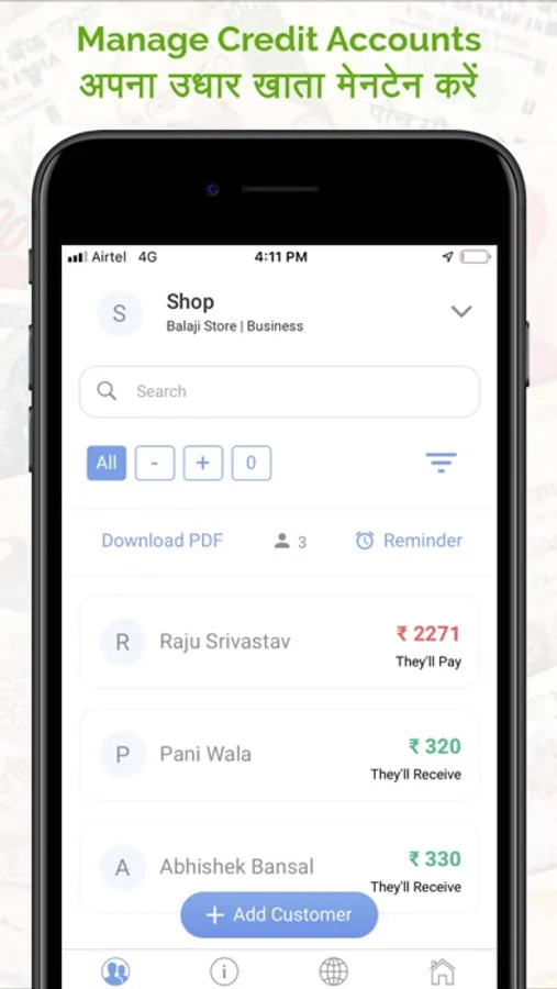 Ok Khata is your digital ledger cash book. It is 100% Free, Safe and Secure and can be used for any type of business to maintain accounts of their customers. Ok Khata works like Tally or Zoho or Busy software for Mobile. Shop owners can best use Ok Khata to record credit and debit transactions of their customers.