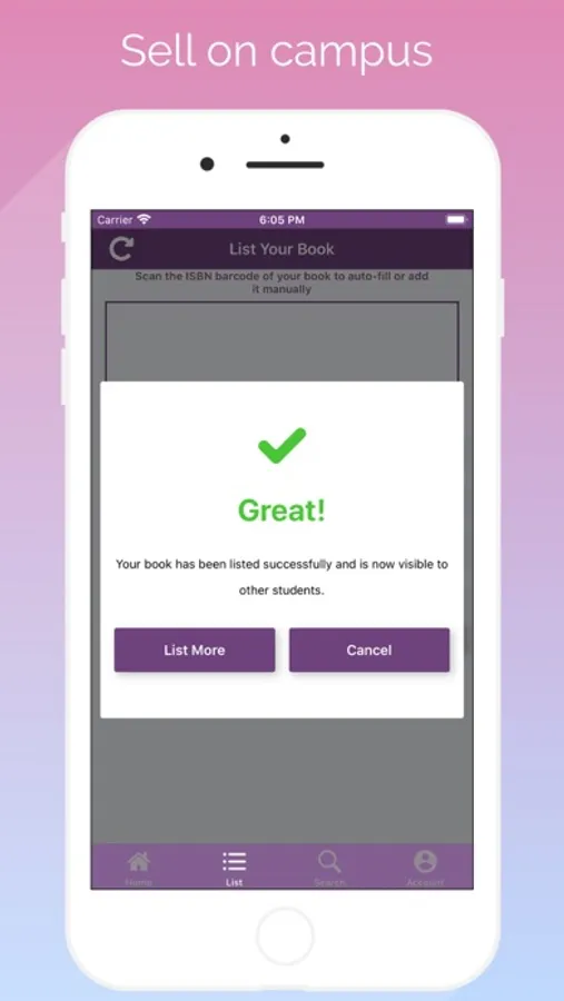 Easily list your textbooks to sell using ISBN barcode scanning.
