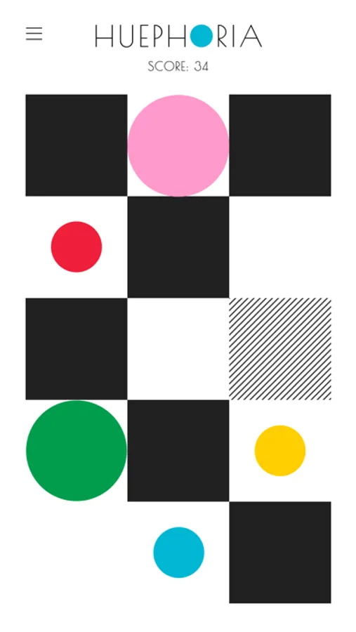 Huephoria is a simple and relaxing tapping game with colorful geometric visuals. The goal of the game is to tap shapes with the correct color. These shapes can include squares, triangles and circles that rotate and move around in a pattern during the game. Keep tapping to increase your score, while watching the geometric visuals evolve. Be aware that the selected color can change unexpectedly any time! Hitting the wrong color will end the game. The Huephoria logo will indicate which color you shuold tap. If there’s a multicolor shape, you should always click that one. For a more relaxed experience, you can turn off the timer from the menu. It’s also possible to play in advanced mode, in which case the game will switch randomly between normal and dark mode. In this advanced dark mode all normal rules are reversed. Good luck!