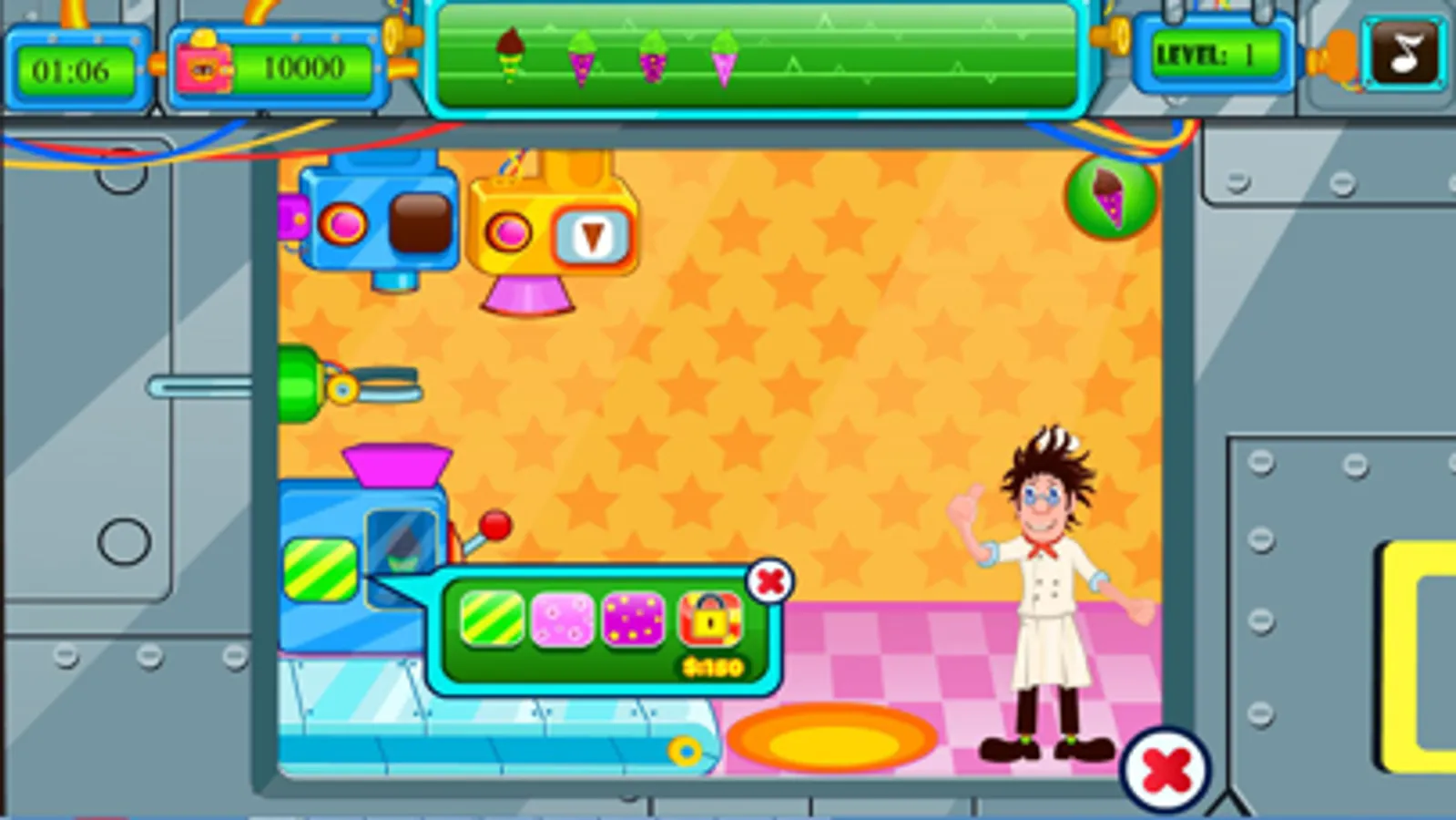 Making ice cream can be lots of fun and why not use your very own candy fabric factory to make it with this cooking game! This time management game is lots of fun and allows you to make ice cream and candy as you work your way through completing the levels. All you have to do is race against the time to create your customers orders by matching them with the orders in the order box! Once you have completed your orders successfully you can easily move up in the levels until you are pumping out your ice cream for all your new and exciting customers to enjoy. With so much fun to be had, you can get creative today and make all the ice cream and candies with this free cooking game!