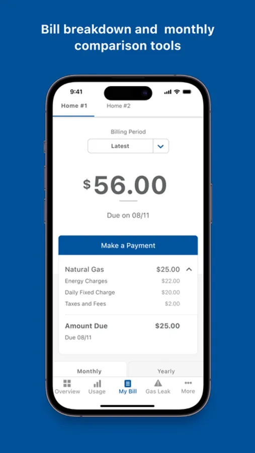 View your current bill breakdown and your bill history.