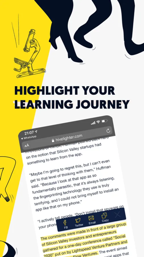 hivelighter is a free highlighter app for your smartphone. It helps you keep track of what’s important in the content you’re reading.