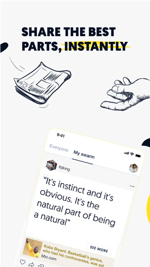 Highlight, save and share the exact right section of what you’re reading, in one tap.