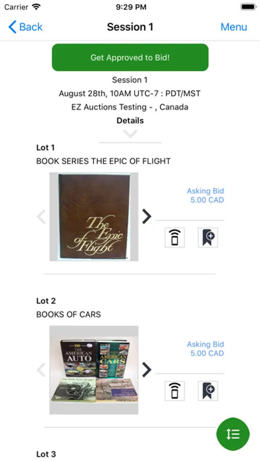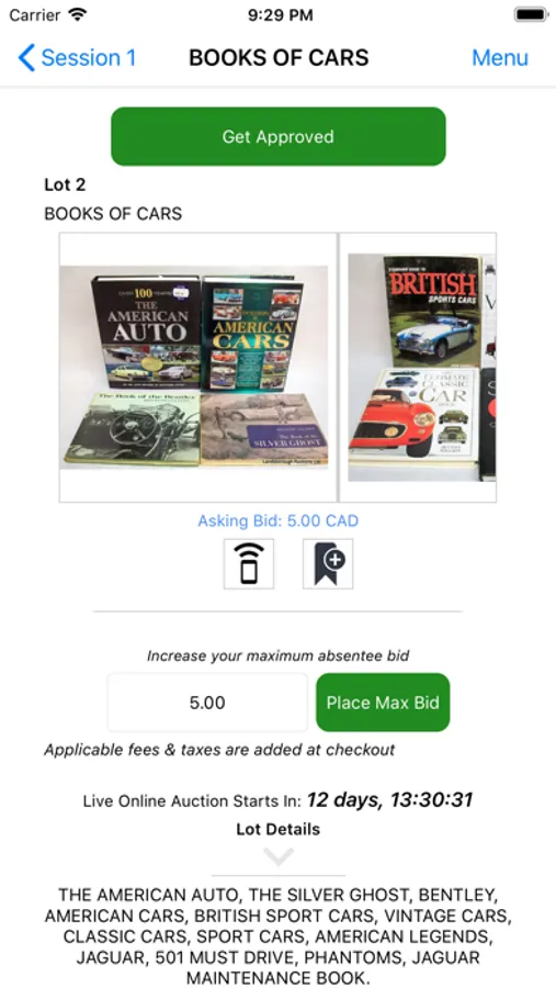 • Browsing of auction catalogs with photos, descriptions and easy use absentee bidding