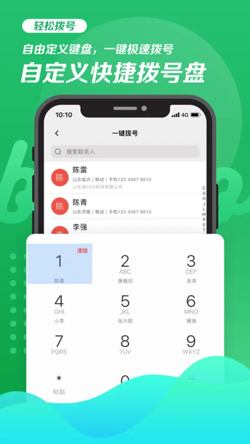 通过T9拨号盘实现快速精准检索联系人。