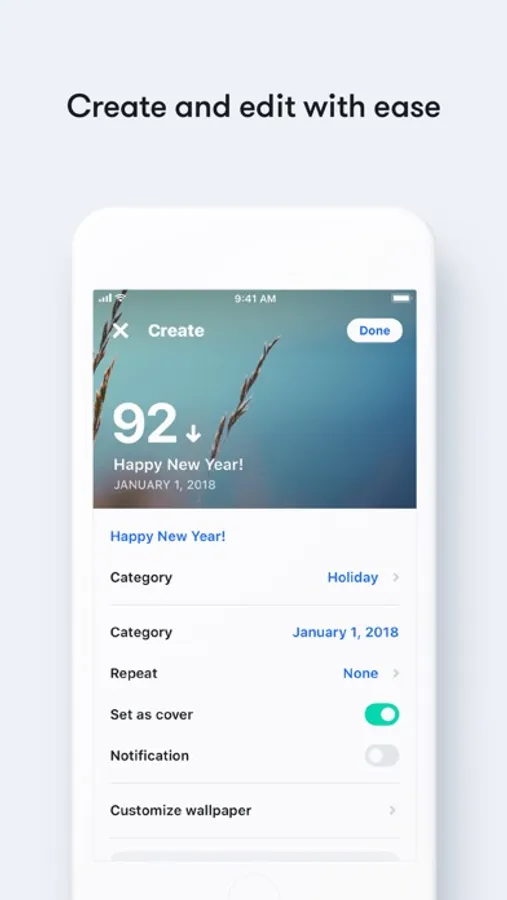 With CountdownⒹ, you can sort through your countdown events by categories and time. You will be able to customize each countdown event with your personal background, record voice memos that reflect your feelings beyond words, and share your delight with friends.