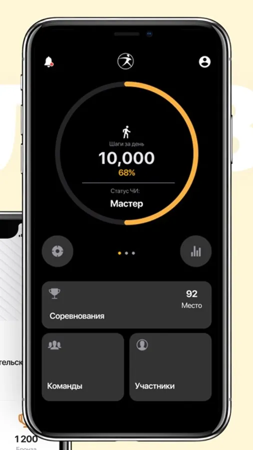 Наше приложение интегрировано с приложением "Здоровье" (the Health app) для отслеживания ваших шагов и пройденного расстояния и отображает их.