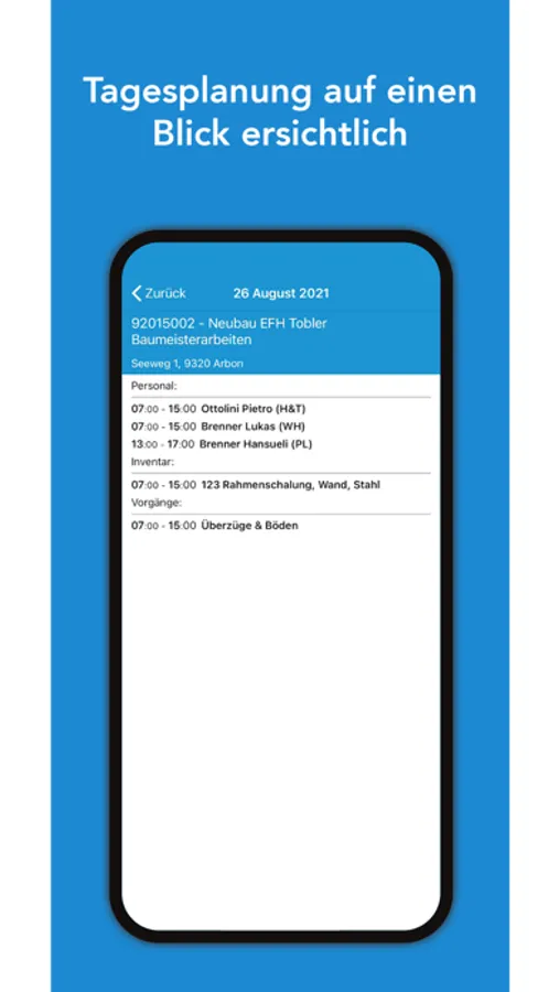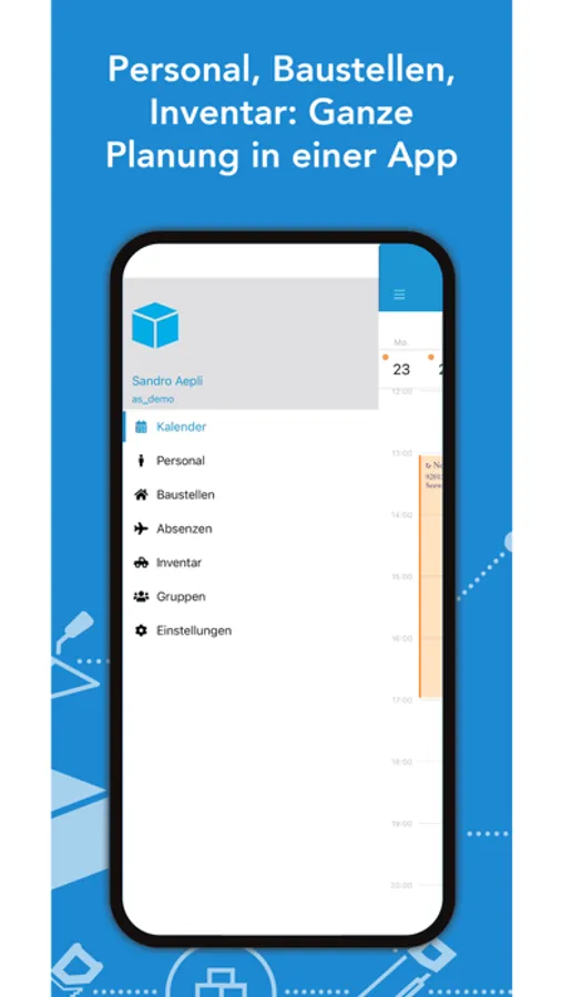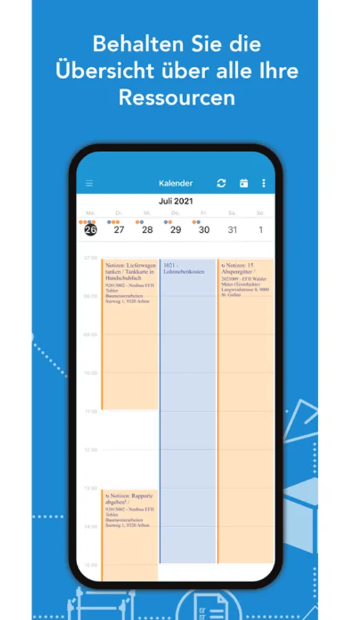 Mit der App SORBA Ressourcenplanung wissen Sie stets wann Sie auf welcher Baustelle eingeplant sind. Die Termine werden in einem intuitiv bedienbaren Kalender ausgewiesen. In den jeweiligen Termindetails sind alle weiteren eingeplanten Ressourcen (Personal und Inventar) ersichtlich. Eine separate Absenzansicht vervollständigt die App.