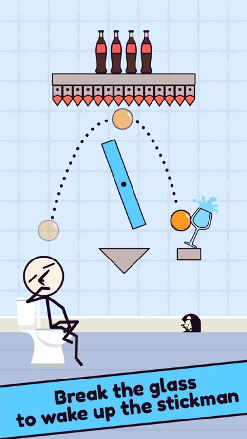 Use colorful pongs to break the glasses, troll the bad stickman.