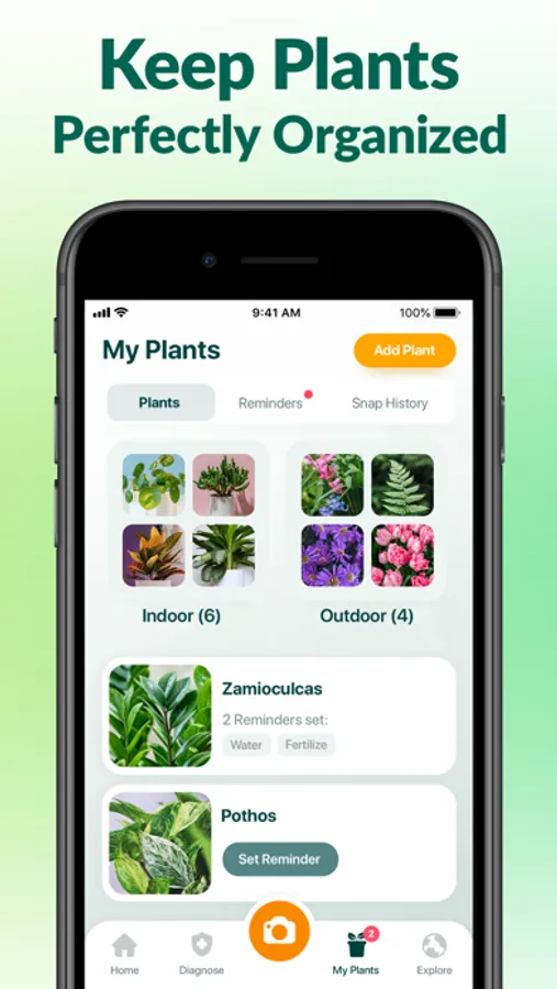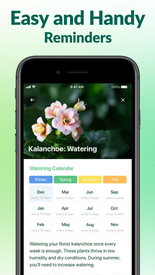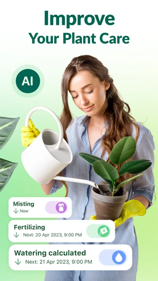 • Keeping all care recommendations in your head is quite a challenging task. Set watering, misting, feeding, and rotating schedules right in the app and never forget about your plant’s needs again.