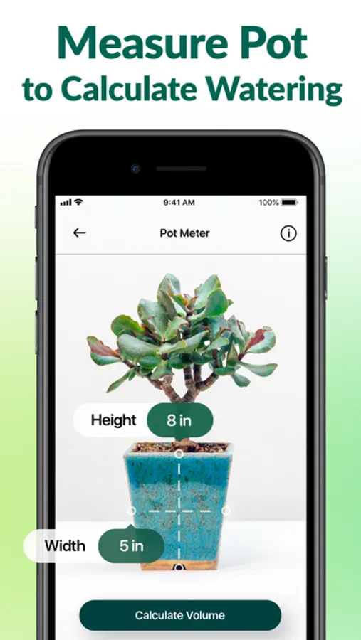 • Need to know the volume of the pot to repot your plant or adjust the amount of water you use? Pot Meter will do the job!