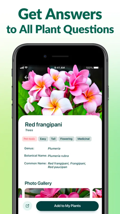Try taking a picture of a tree or mushroom in the park and recognize it with our app. You won’t be able to stop. With our extensive database, you can identify any plant, mushroom, mineral, and insect you come across and impress your friends on your next walk in the park. You can also search for a plant by its name or set Filters and discover the green pets that suit you best.