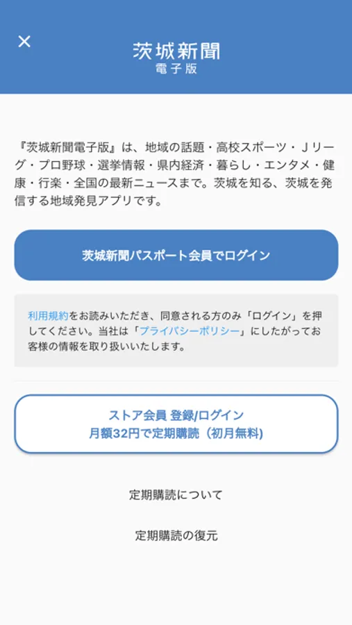 定期購読を行うことで、「茨城新聞電子版」アプリをご利用いただけます。