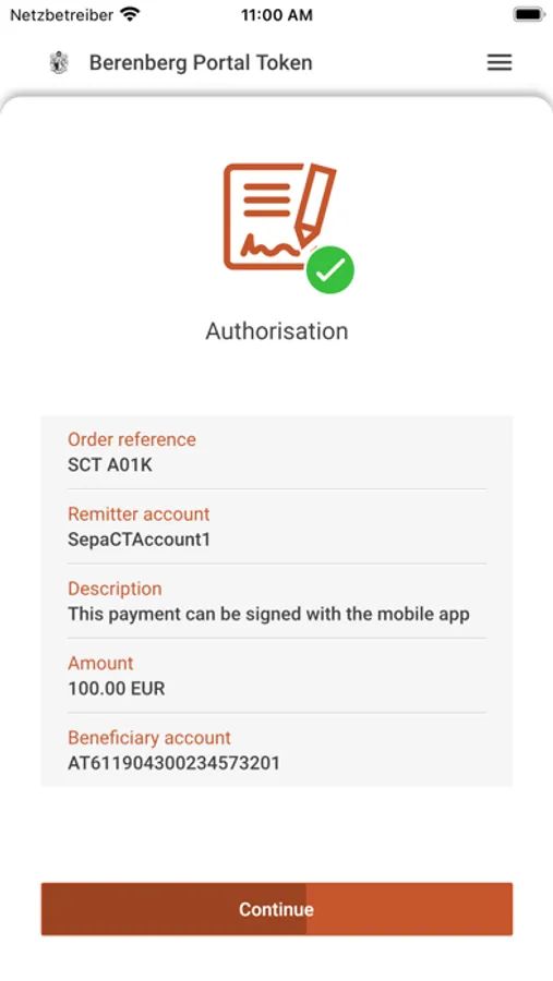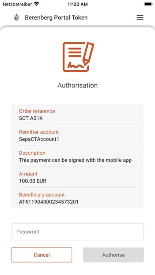 You can use the app as a mobile token to login into Berenberg Corporate Portal via your web browser.The login which you want to perform in the web browser will be confirmed in a secure way.