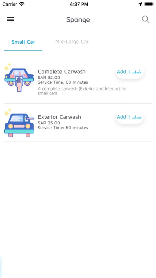 Through our app, you can order a carwash at your place weherever that could be. You can choose your prefered time and date of the visit as well as you can choose the type of carwash you would like to have. Currently, we're aiming to cover the city of Riyadh and soon we'll be covering all of its disctrics. Sponge is your go-to carwash app and for sure we would be happy to receive your comments and your suggestions to improve our service. Therefore, please don't hesitate to email us on our email listed below. "