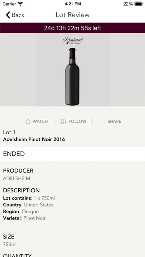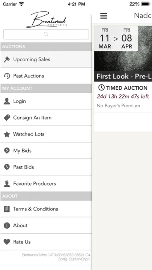 The World's Most Interesting Wine Auctions With the Brentwood Wine Company app you can preview, watch, and bid in our auctions all from your mobile phone. Participate in our sales while on the go or at your leisure from your mobile device and gain access to the following features: Quick registration Follow upcoming lots and receive push notifications to ensure you never miss a chance to bid Leave absentee bids Bid live using our simple “swipe to bid” interface Track your bidding activity View calendar of past and future sales