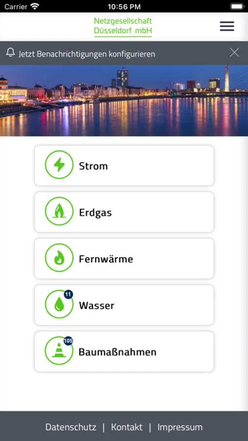 Mit dieser App sind Kunden der Netzgesellschaft Düsseldorf mbH schnell informiert, wenn z. B. ihr Hausanschluss durch Wartungsarbeiten, Netzbaumaßnahmen oder eine Störung im Netz betroffen sein könnte.