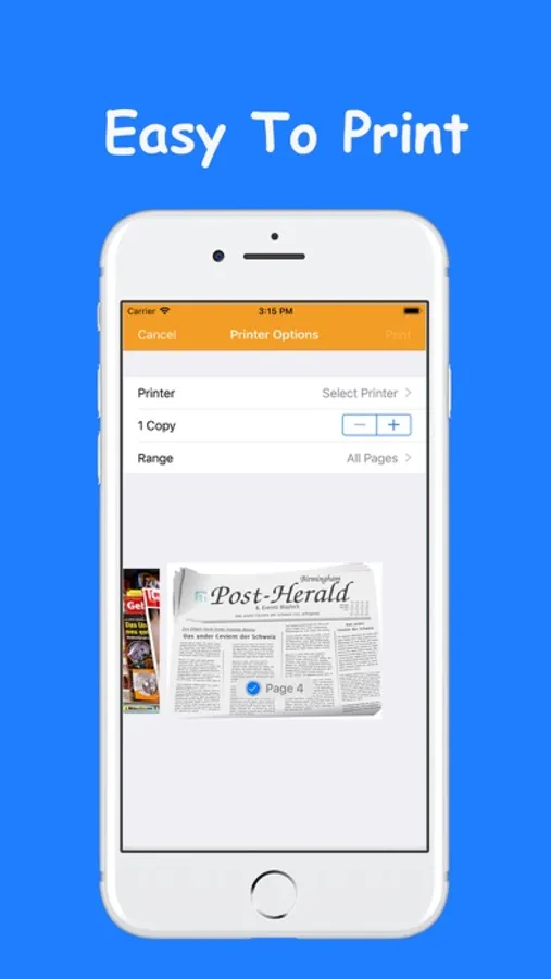 print your scanned documents from your device.you must need air print enabled printer to print your documents
