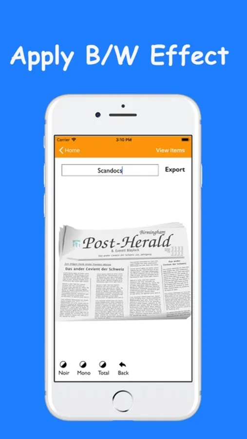scan your documents with high image resolution and quality.save scanned items in high quality Pdf.