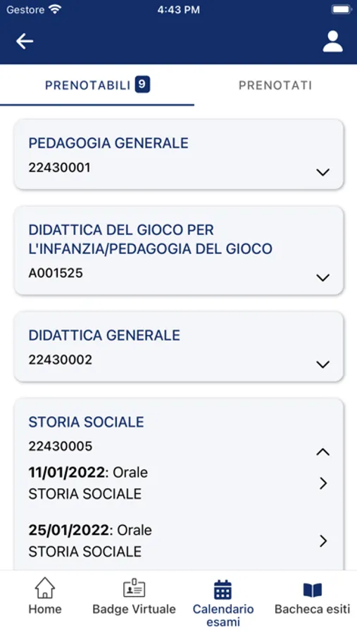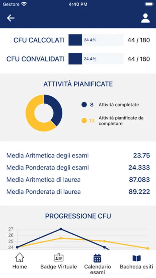 • libretto universitario con visualizzazione degli esami sostenuti, piano di studi, media dei voti e cfu conseguiti