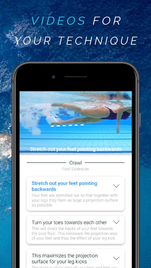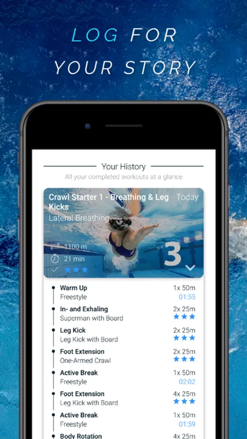 Each workout is built on simple units whose execution you can easily check. You can improve your swimming technique step by step with each workout. At the same time you increase your endurance and fitness. Your visit to the pool stays motivating and varied.