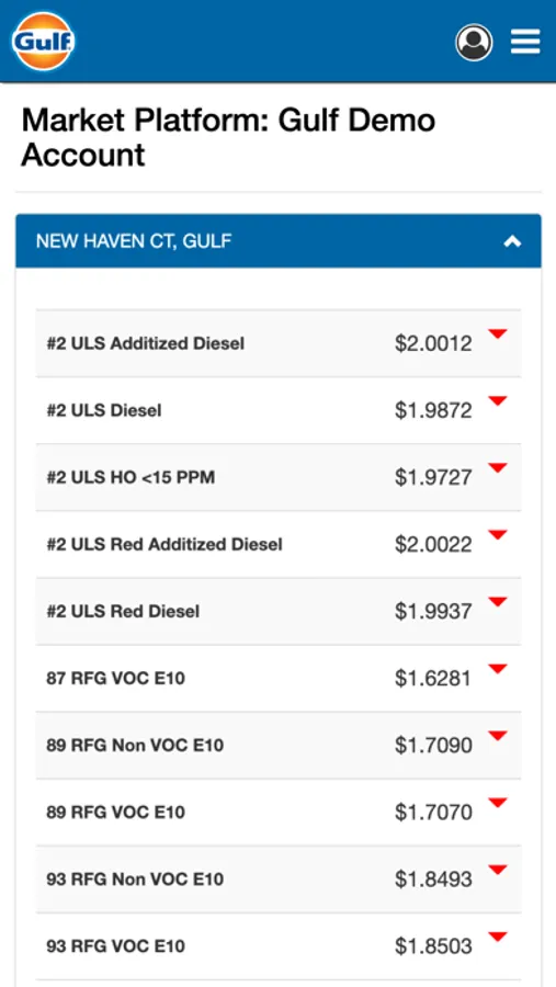 The Gulf Exchange app allows customers to view and manage their account by quickly surfacing recent prices, purchases, and settings.