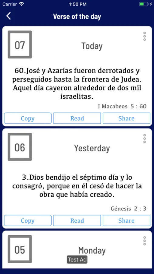 - Track your Reading: When you open La Biblia Moderna en Español App you will be able to resume your last reading and every time you finish a chapter you can mark it as completed to keep track of your progress.