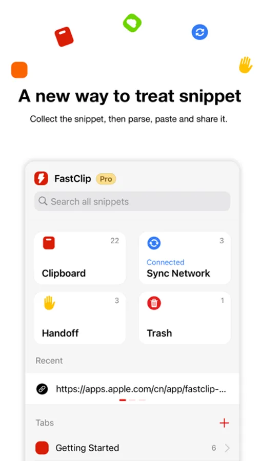 FasClip 3 is a tool for collecting, synchronizing, and retrieving Snippets,including text, links, images, and files.