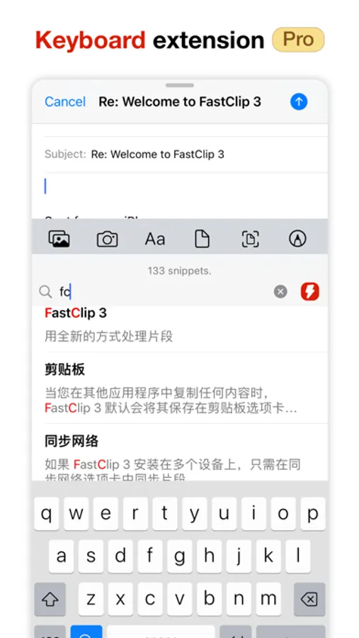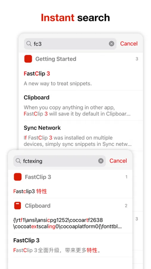 Retrieving in milliseconds without tagging the Snippets, even among thousands of Snippets, can be achieved thanks to the indexing engine of FasClip 3. For users who use Chinese can also input Pinyin to improve retrieval efficiency.