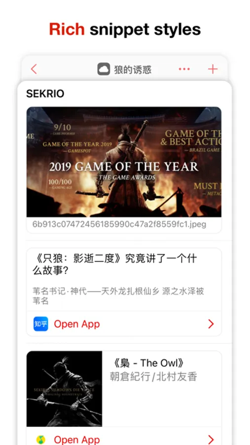 Snippets from the clipboard, photo albums, files, QR code scans and text edited by user are all supported.