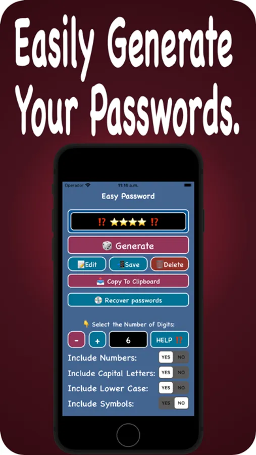 EasyPasswords is the ideal application to generate, save and manage your passwords very easily.