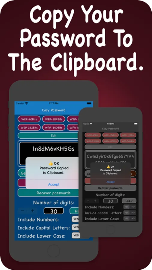 You can choose the number of digits in the password and whether it contains uppercase or lowercase letters, numbers, symbols, or all.