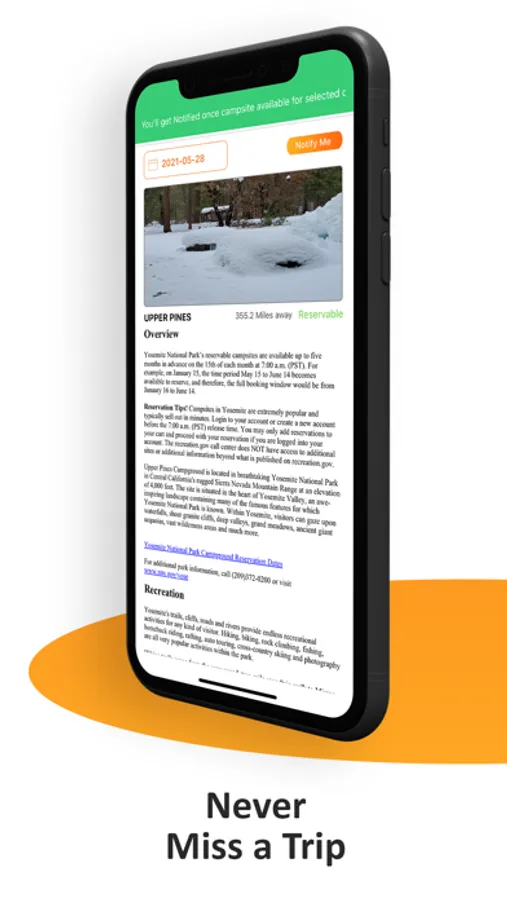 At our camping cancellation app provides you campsite availability alert whenever there is a campsite available near you. Availability Checker determines the availability status of National Park and National Forest campgrounds and campsites every few minutes. Don't miss another camping trip when you can't get a reservation. Notify when any recreation.gov campsites become available. Choose a site and date and we'll notify you when your preferred location is available. Hard-to-reserve sites are now a breeze to grab.