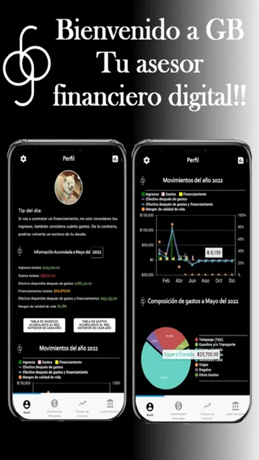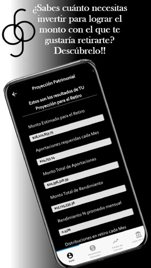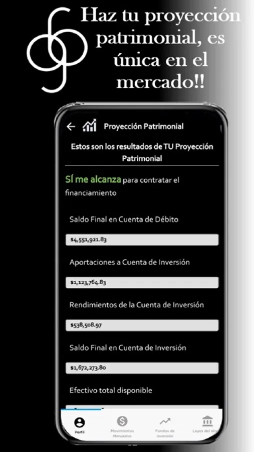 Con nuestra APP podrás darle seguimiento personalizado a tus ingresos, gastos y financiamientos, identificar oportunidades para ahorrar, hacer proyecciones patrimoniales hasta por 50 años, calcular cuánto necesitarías ahorrar para tu retiro, entender las leyes del dinero...y mucho más!!