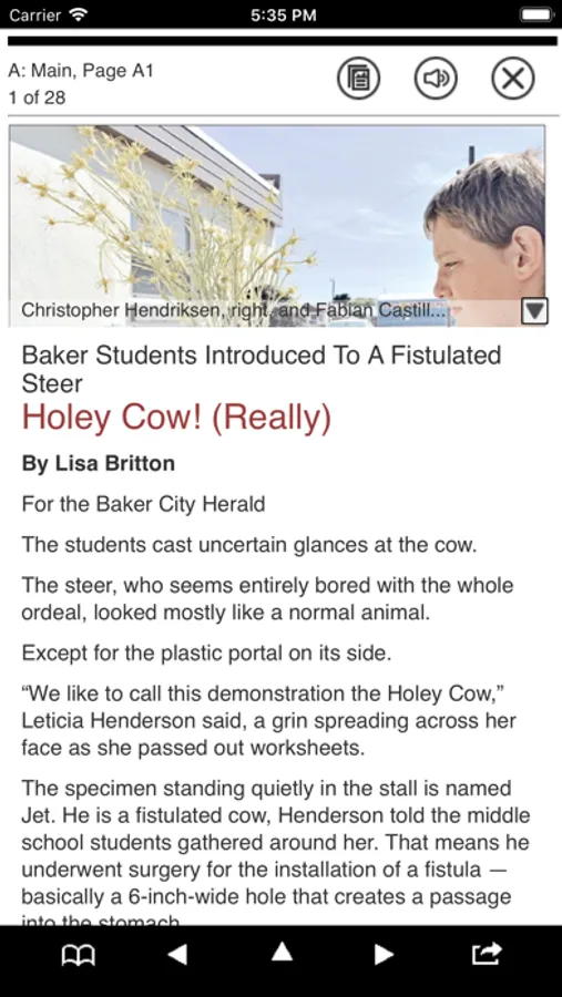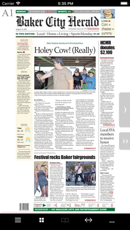 You can flip through pages and skim headlines as you would the printed edition. But better than that, Baker City Herald E-Edition allows you to enlarge type with the tap of a finger, or jump instantly to the conclusion of a story on another page. You can link to websites mentioned in stories with a single touch, or fire off an e-mail to an address linked from the newspaper. Even better, the E-Edition includes videos and photo galleries with many stories. And if you missed the paper one day, don't worry. Baker City Herald E-Edition lets you download past E-Editions, too.
