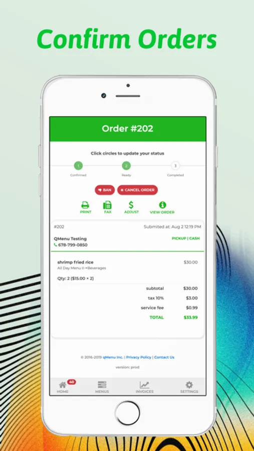 qMenu for Restaurants allows restaurant owners to manage online orders, update order status, update menu price, upload menu item photos, and change settings.