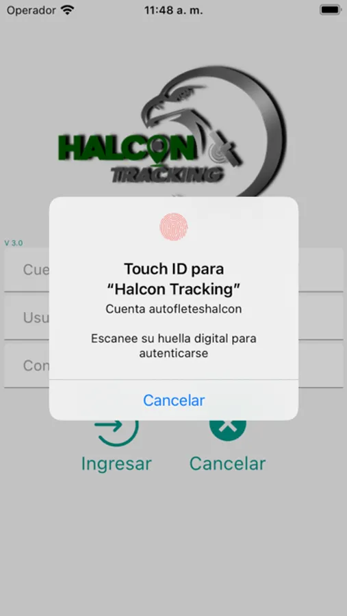 El usuario podrá acceder a la aplicación utilizando el mismo usuario y contraseña con el que hace uso de la plataforma de rastreo de Halcón Tracking.