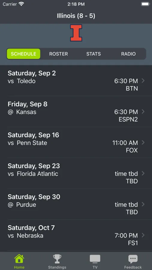 Illinois Football Schedules provides scores, links to live radio, schedules, tv channels, player profiles, and game matchups in one location.
