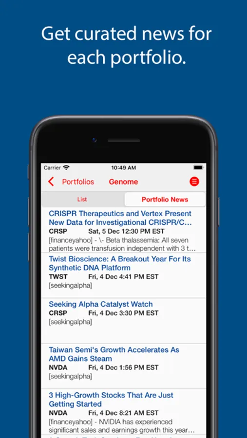 . See price changes in real-time or sort portfolios by any one of 17 statistics including dividend-yield, earnings date, gain/loss etc.