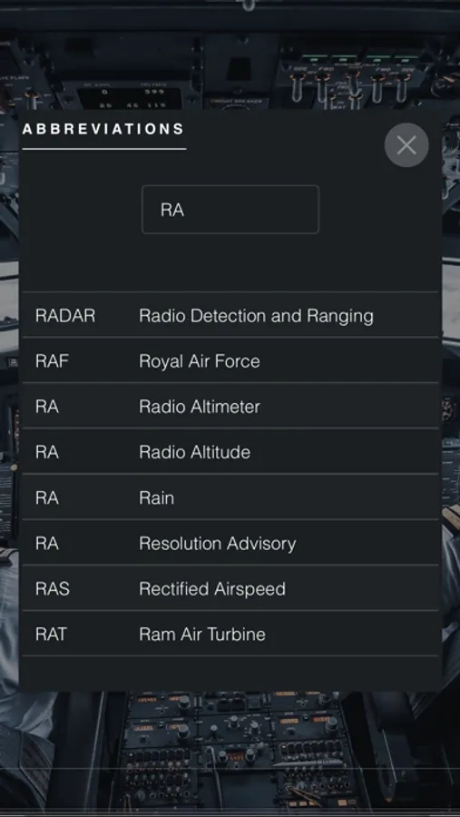 Aviation comes with an ever increasing amount of acronyms and abbreviations. Forgot one? We included over one thousand abbreviations in our database, just look them up.